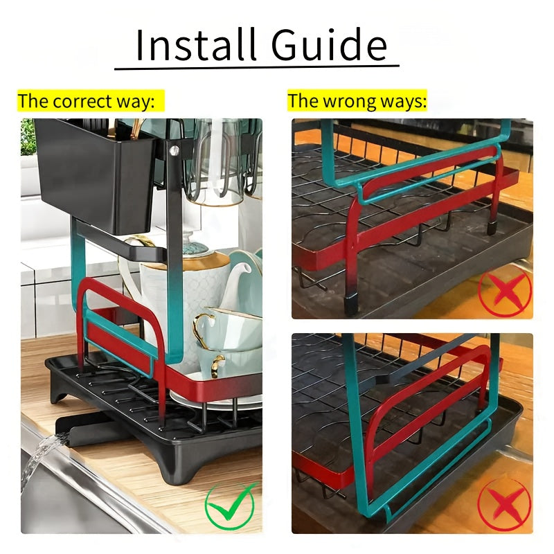 1pc Large Capacity 2-Tier Dish Drying Rack with Drainboard, Double-Layer Bowl & Cup Rack, Detachable Over The Sink Organizer for Kitchen Counter, Black & White - Ideal for Plates, Bowls, Cups & Cutlery Storage, Dish Drying Rack